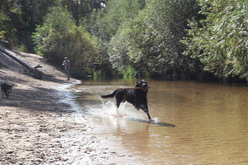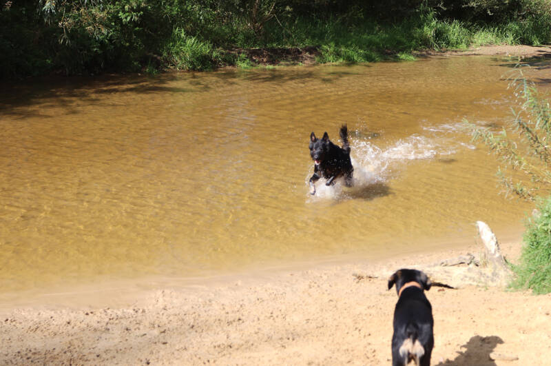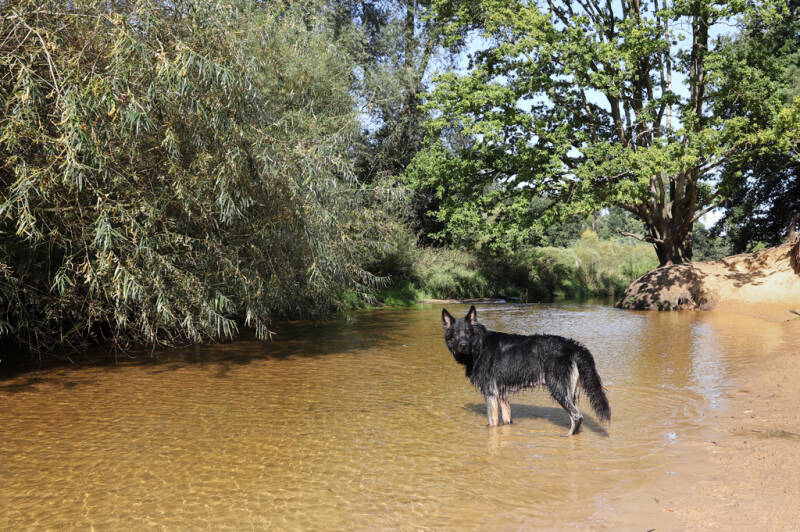 In het natuurgebied moeten de honden helaas aan de lijn, maar er is een klein losloopgebied aan het water, waar de honden lekker kunnen spelen, spetteren en ravotten. Toen ik er was waren er gelukkig een paar honden in het losloopgebied en heeft mijn hond er heerlijk kunnen spelen met andere honden. Het losloopgebied is niet groot, maar het heeft water, zand en vrijheid; alle ingrediënten voor een blije hond.